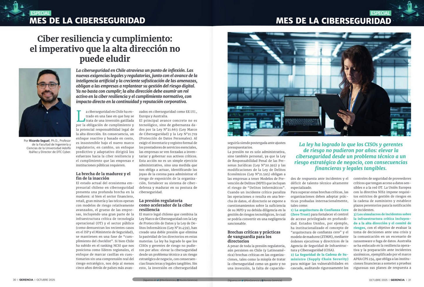 Revista Gerencia - Ediciones EMB - Nextwork360 Latam, destaca el análisis de Ricardo Seguel, Ph.D., profesor de la Facultad de Ingeniería y Ciencias UAI y director de DTC Cyber, sobre la ciberresiliencia.