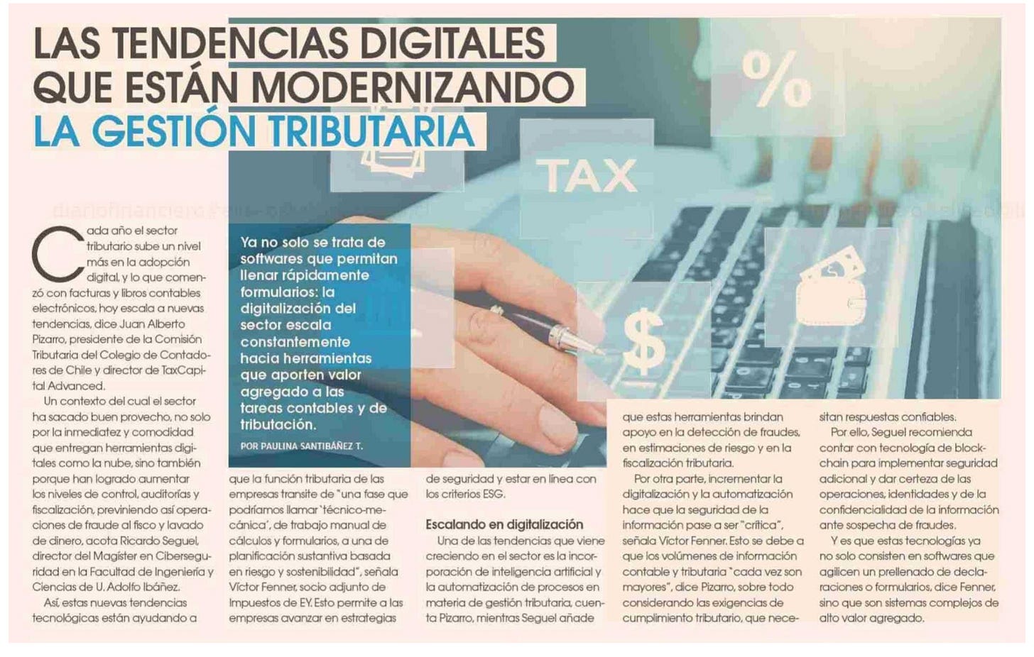 Diario Financiero destaca los comentarios de Ricardo Seguel, director académico del Magíster de Ciberseguridad de la Facultad de Ingeniería y Ciencias UAI, acerca de las nuevas tecnologías y sistemas para la gestión tributaria.